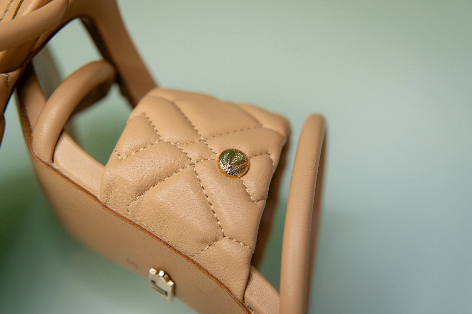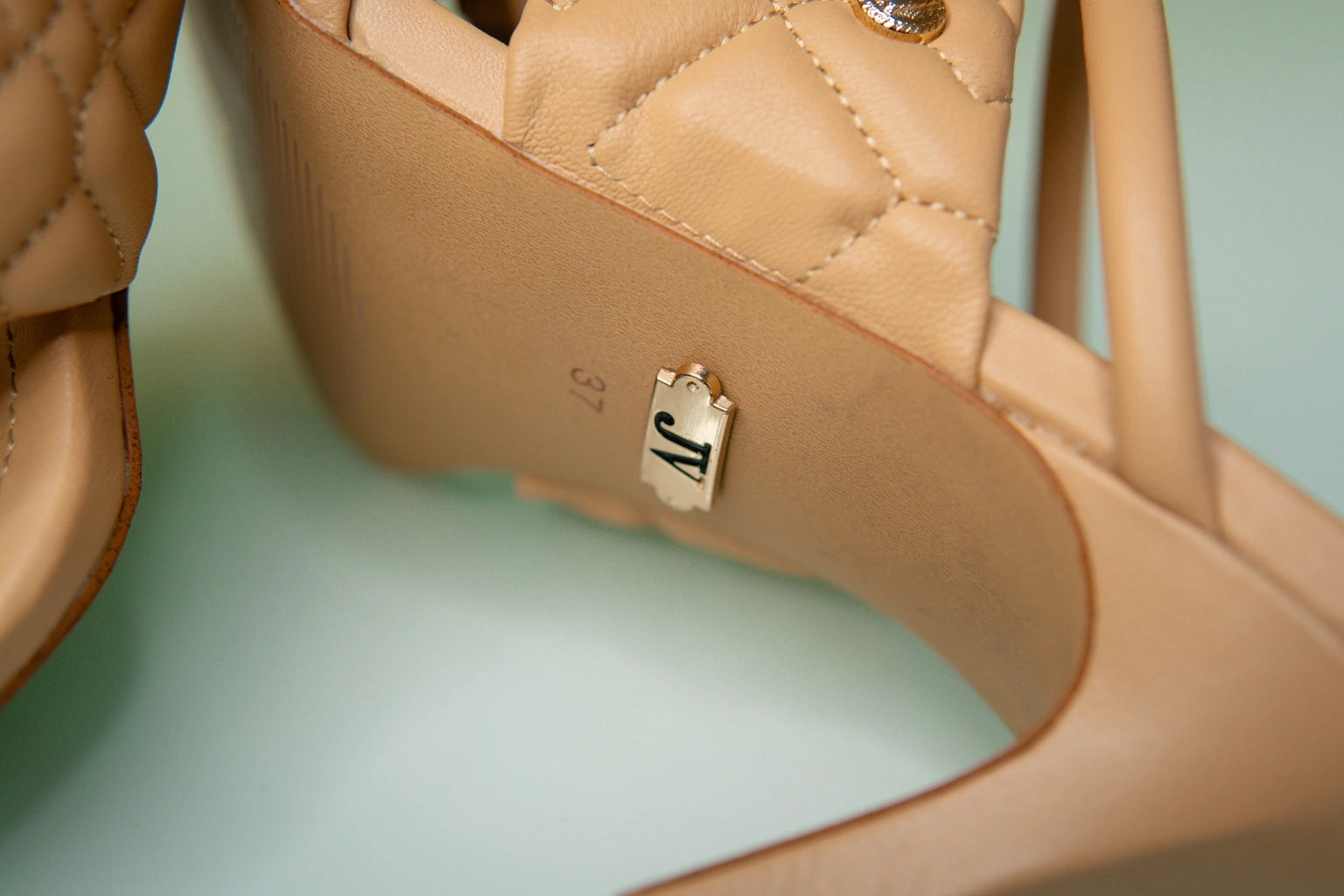Cada linha deste delicado calçado revela a consagração da estética clássica com a modernidade subtil. O acolchoado em padrão matelassê, magistralmente costurado, confere não apenas textura, mas uma aura de distinção e requinte. O discreto apontamento dourado, fulcral na harmonia da peça, traduz-se como assinatura silenciosa de um objeto que transcende a mera utilidade, tornando-se um ícone de sofisticação