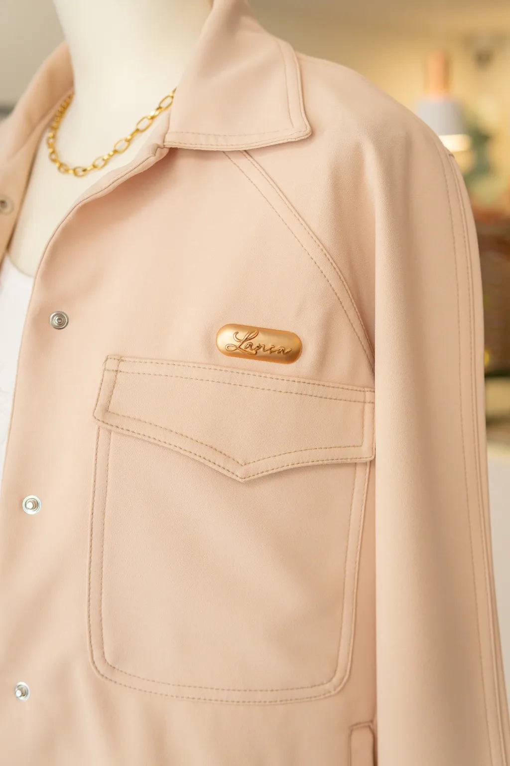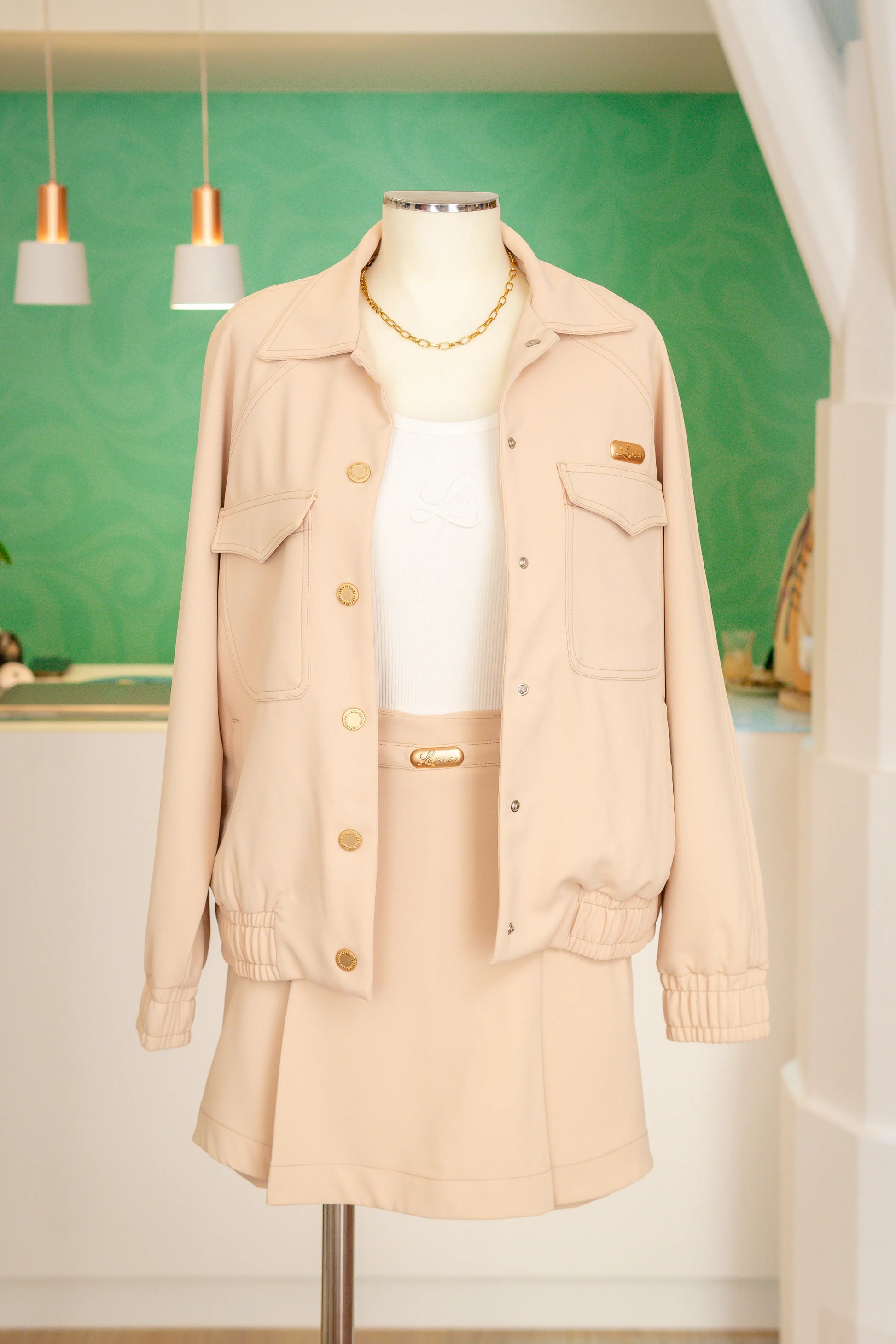 Distinto pela sua roupa contida e apuro técnico, este bomber casual em bege claro afirma-se como uma peça central no guarda-roupa de quem preza a estética refinada sem prescindir do conforto contemporâneo.