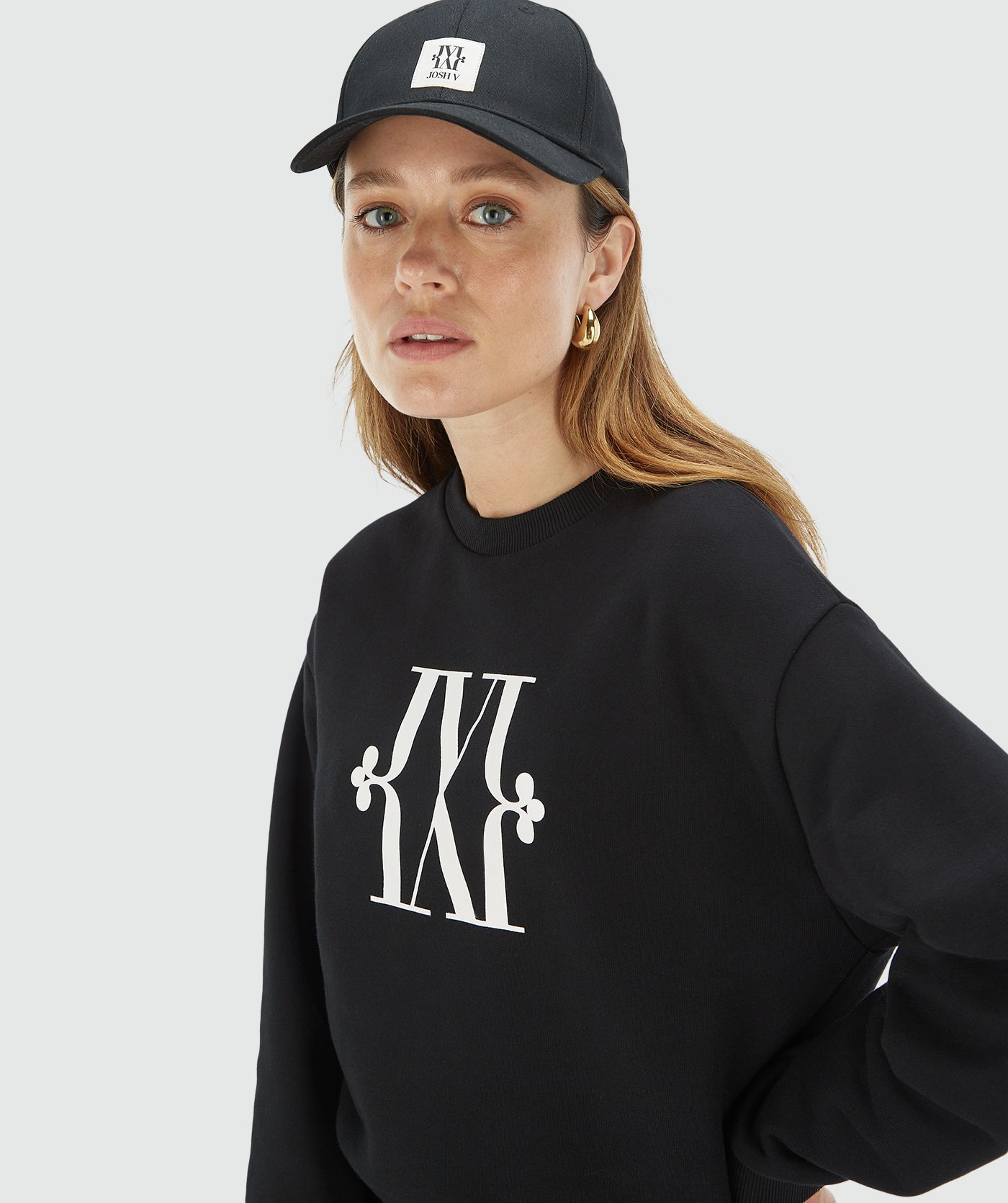 O boné Amy Black apresenta uma construção estruturada em tecido resistente, com pala curva e painéis superiores reforçados, garantindo durabilidade e um ajuste impecável. O patch frontal com o monograma JV acrescenta contraste elegante, enquanto o bordado traseiro evidencia a identidade da peça.