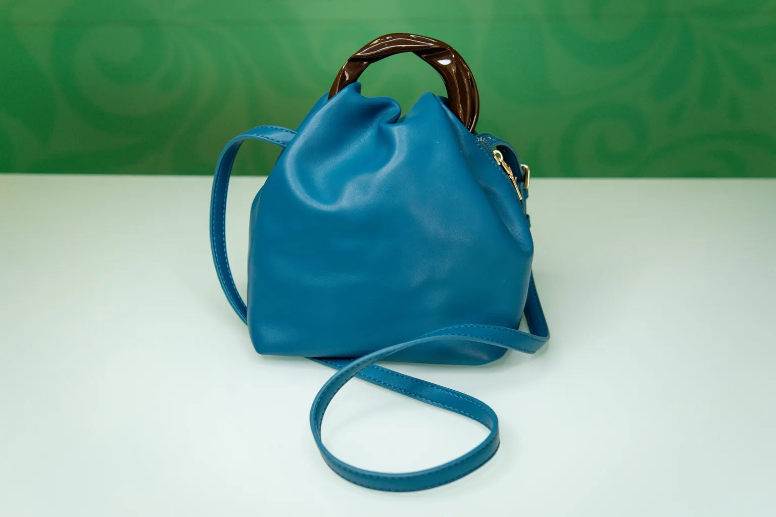 Nesta bolsa reside a perfeição do minimalismo trabalhado com mestria. A pele de toque suave, em azul intenso, revela uma presença magnética, equilibrada pela robustez escultórica da alça em resina. Não há excesso, apenas o necessário — elevado à sua mais alta expressão.