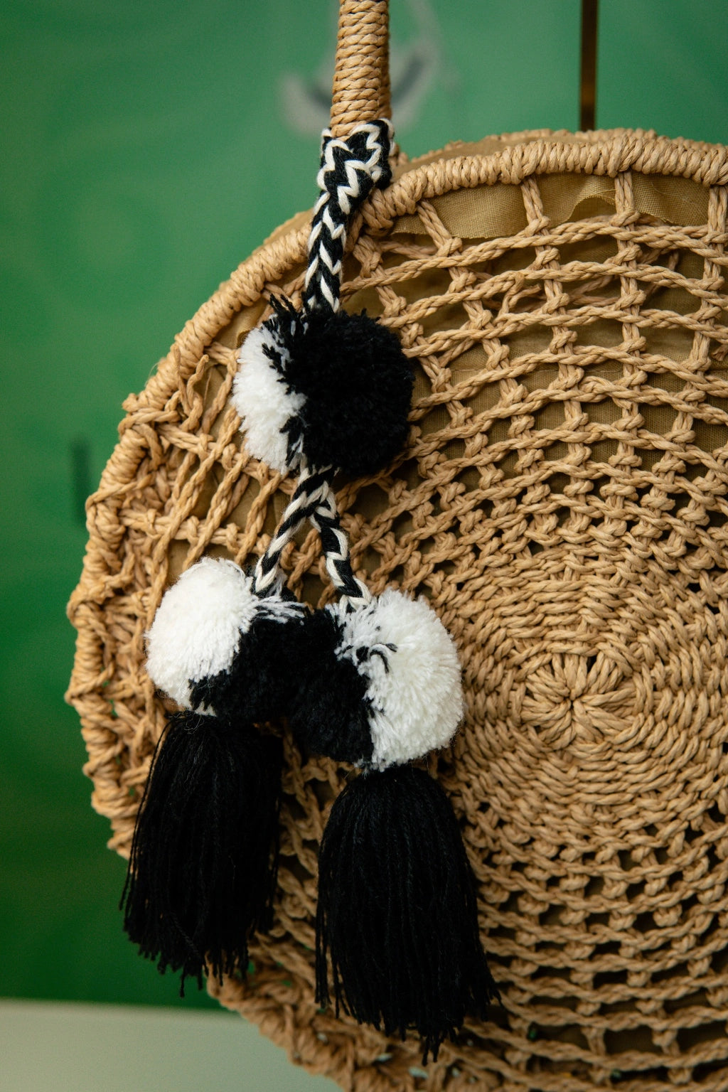 Os detalhes decorativos, em contraste cromático de preto e branco, conferem à peça um caráter expressivo, acrescentando-lhe movimento e vivacidade. Assim, não se trata de uma mera bolsa, mas de uma declaração de identidade, concebida para a mulher que valoriza o equilíbrio entre o natural e o requintado, entre a tradição e a modernidade.
