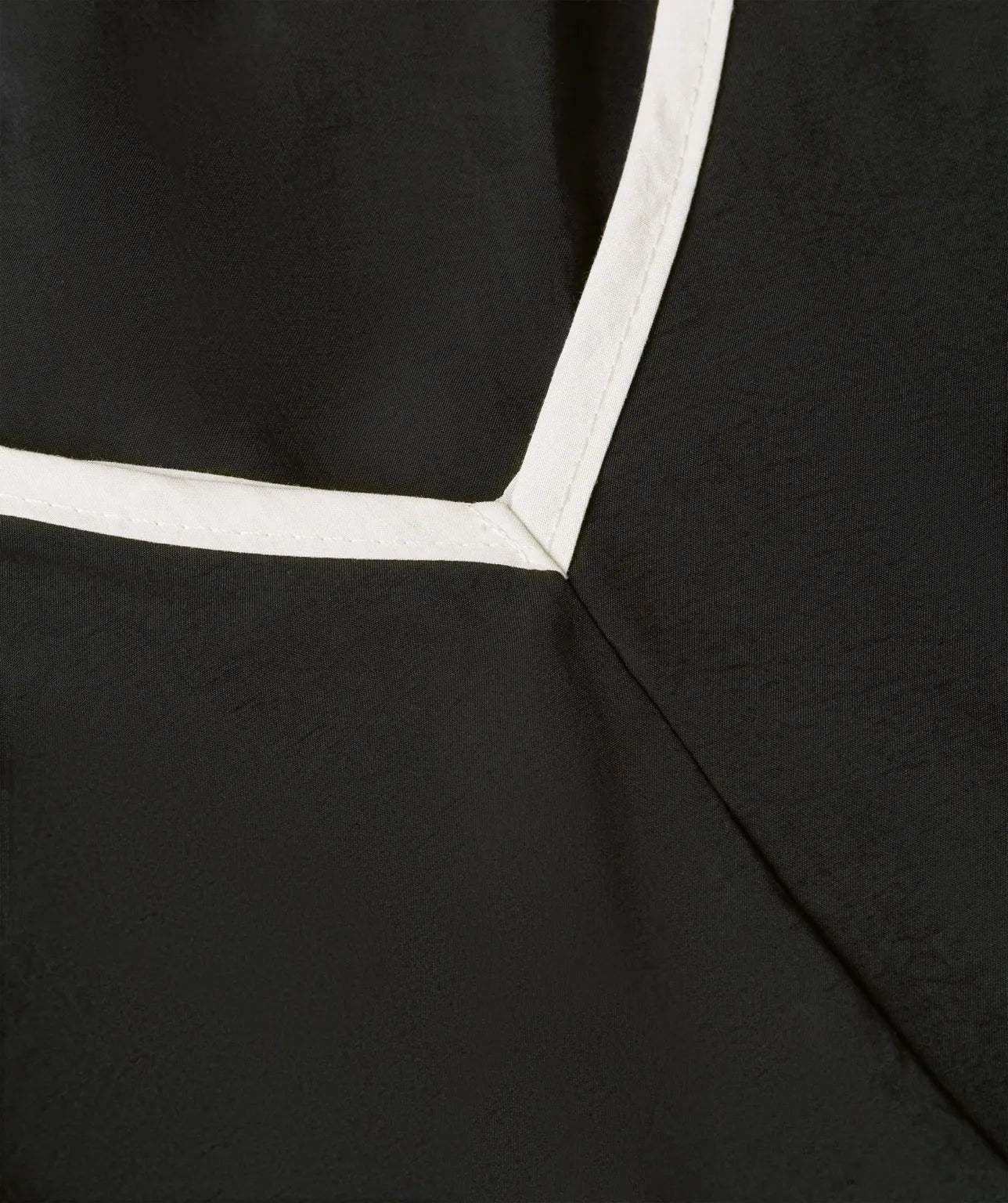 As alças largas em tom cru, que se atam em laços sobre os ombros, introduzem um contraste suave ao preto profundo do tecido, evocando um delicado equilíbrio entre firmeza e leveza. O decote em bico, tanto à frente como nas costas, alonga a linha do pescoço e revela a pele com discrição elegante, conferindo ao vestido uma versatilidade rara: tanto apropriado para eventos diurnos descontraídos como para ocasiões noturnas de requinte informal.