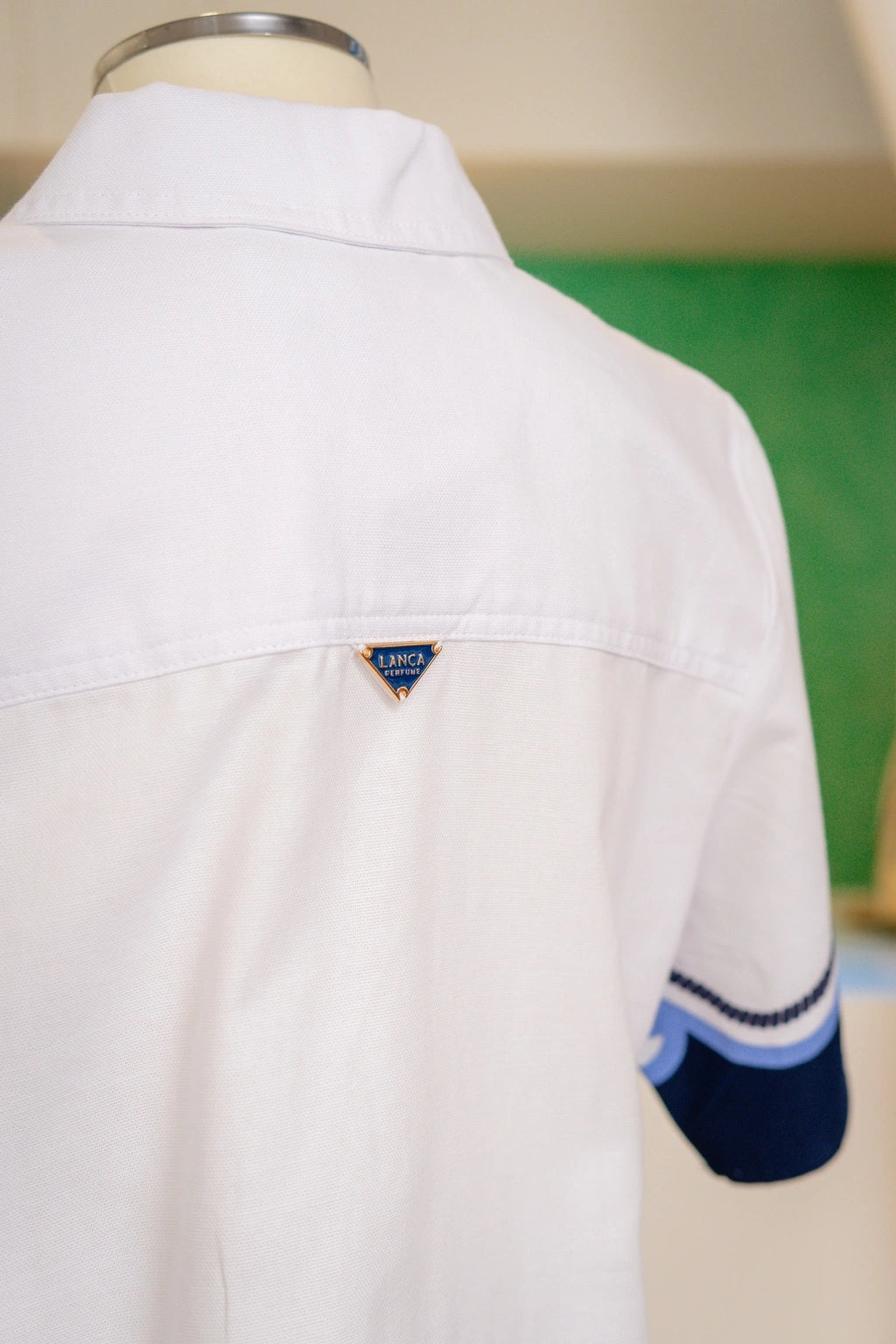 Trata-se de uma proposta singular para ocasiões estivais que exigem uma presença distinta, sem abrir mão da leveza e frescura necessárias. O logótipo metálico “Lança Perfume” inserido discretamente nas costas da camisa atesta a assinatura de uma marca comprometida com a excelência do acabamento e o bom gosto absoluto.
