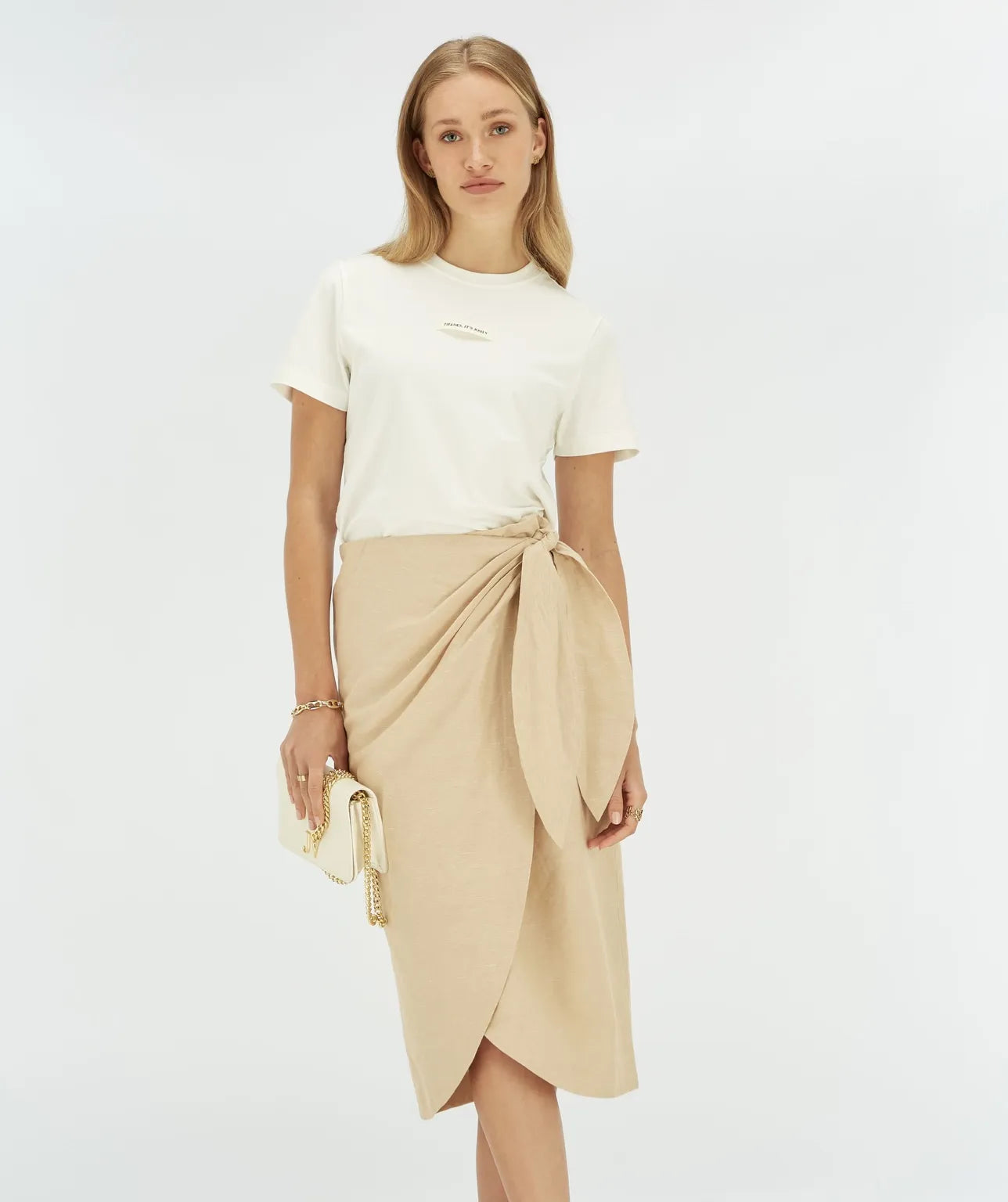 Com uma elegância sutil e uma presença discreta, a camiseta DORIE em tom off-white simboliza a sofisticação moderna. O detalhe do logótipo “Thanks, it's JOSH V” na parte frontal acrescenta um toque de identidade distintiva, sem sobrepor-se à leveza do seu design.