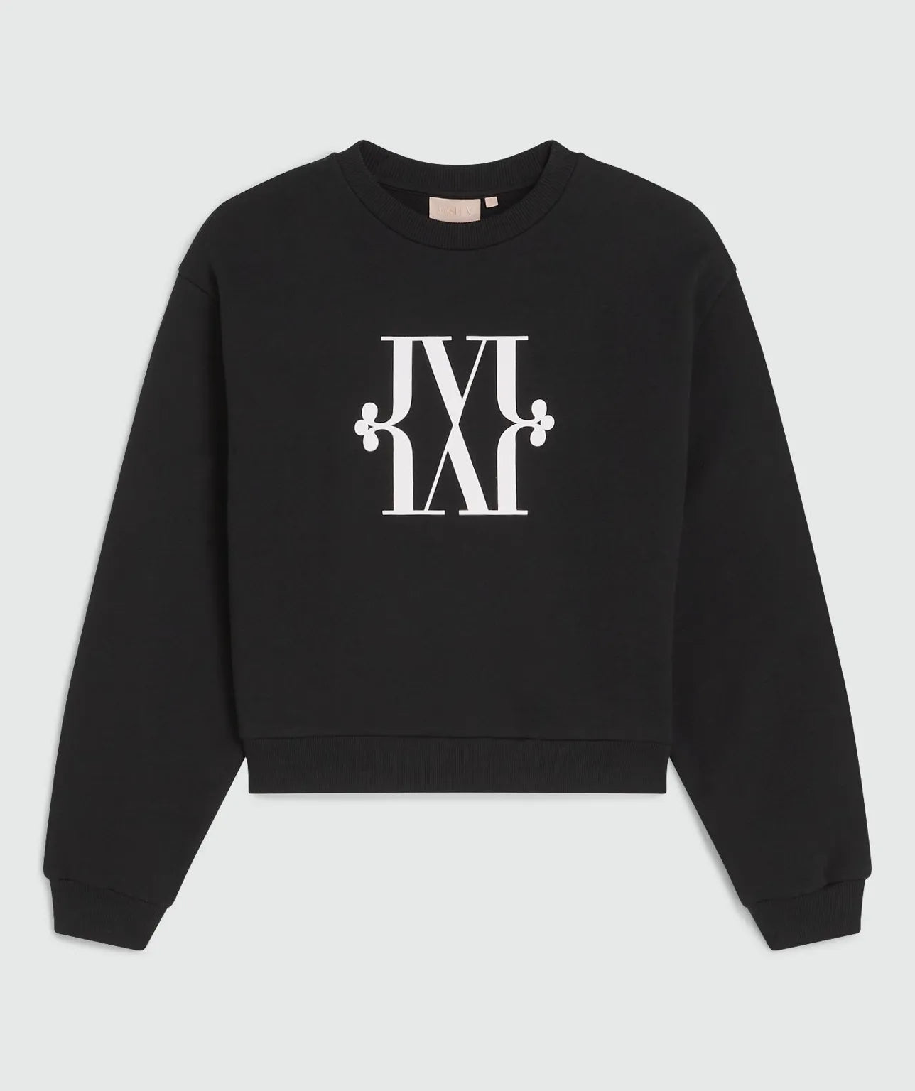 Confeccionada em algodão encorpado, a EBAH une o conforto do regular fit com o impacto visual do monograma JV centralizado. A gola careca, os punhos e barra canelados mantêm a estrutura alinhada sem perder a suavidade ao vestir.
