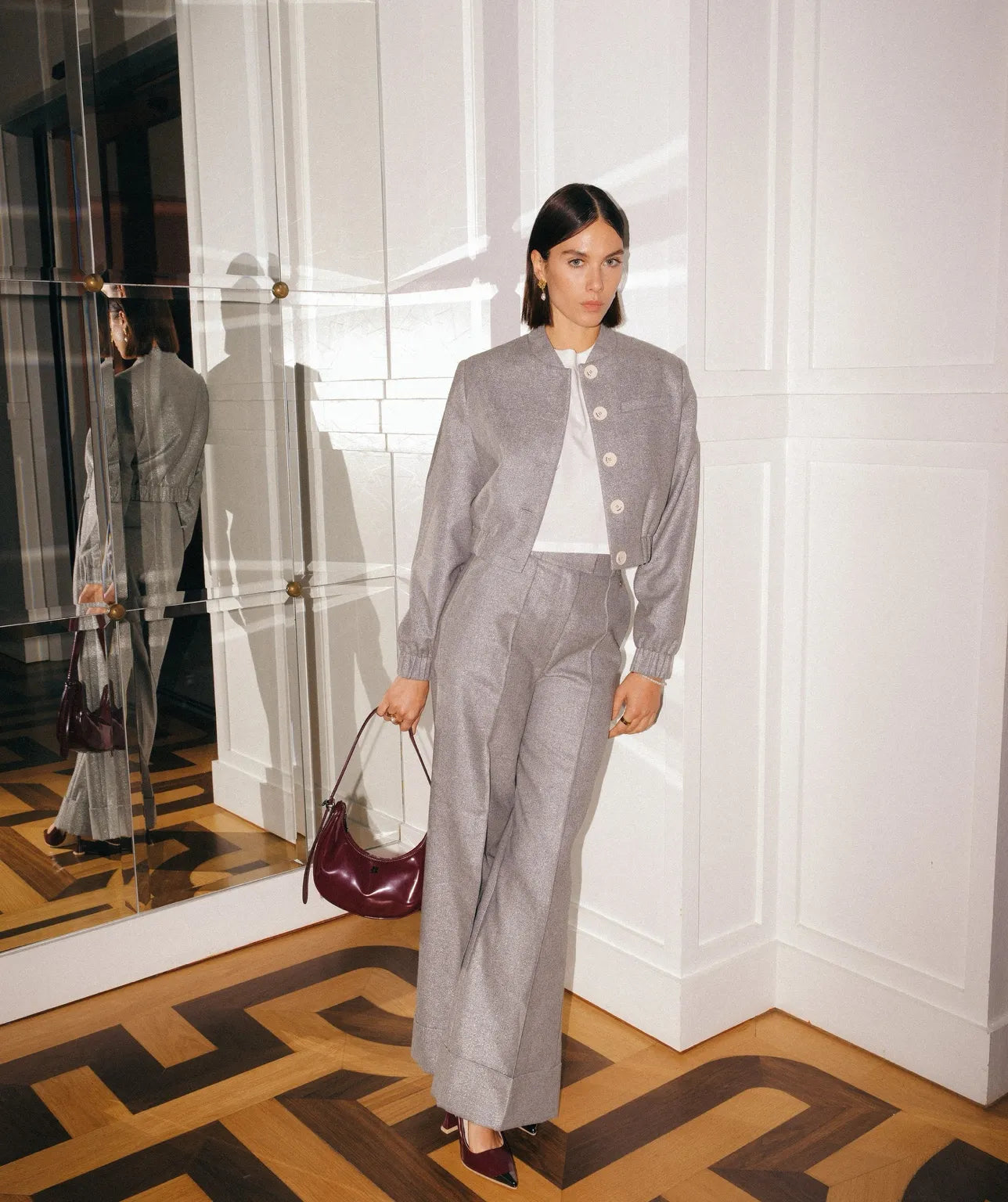Concebida com linhas de rara sobriedade, esta mala apresenta-se como um exercício de elegância discreta, onde cada detalhe se revela meticulosamente ponderado. O tom profundo em vermelho-berry confere-lhe uma presença distinta, um equilíbrio entre sofisticação e ousadia que se prolonga no tempo