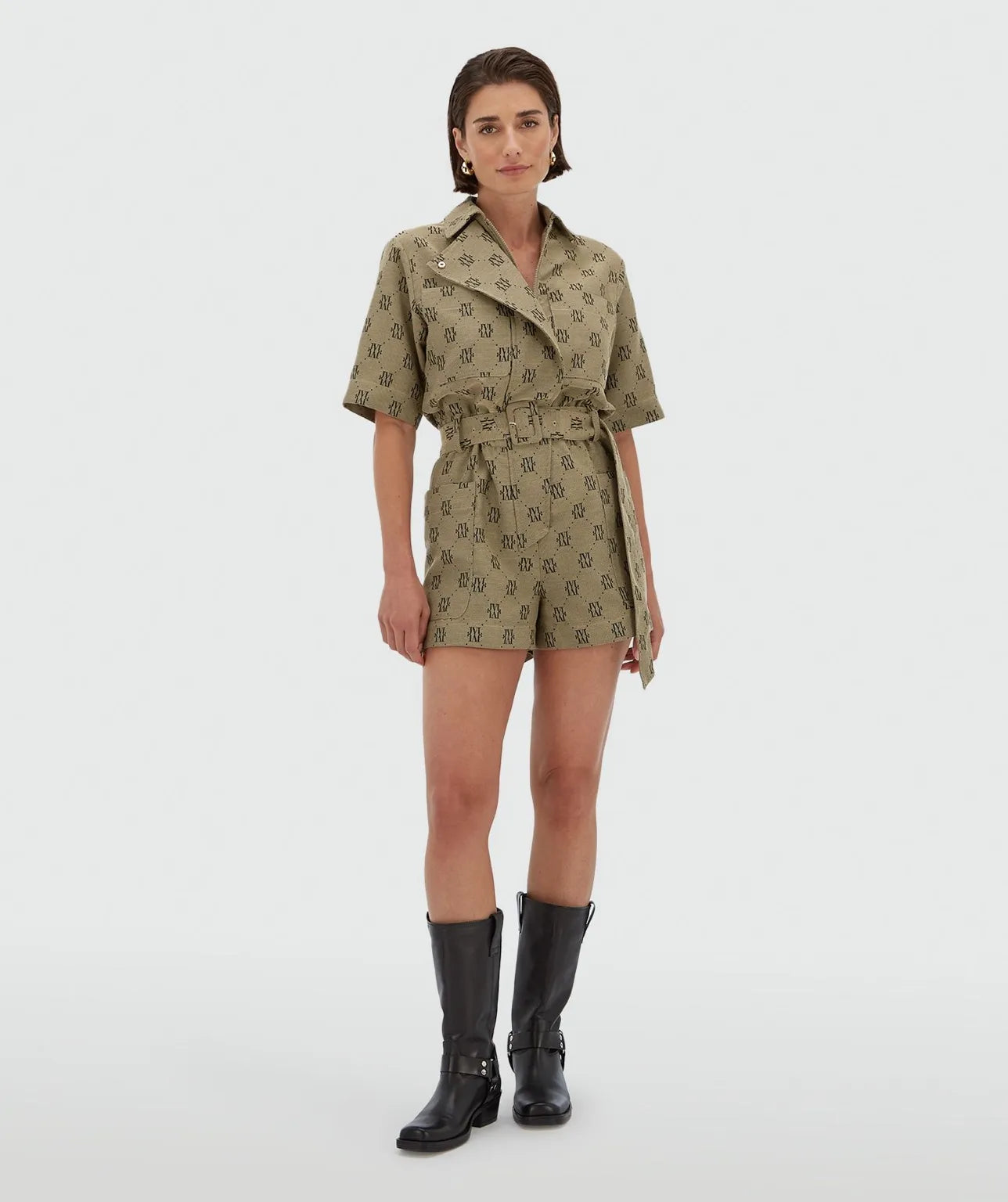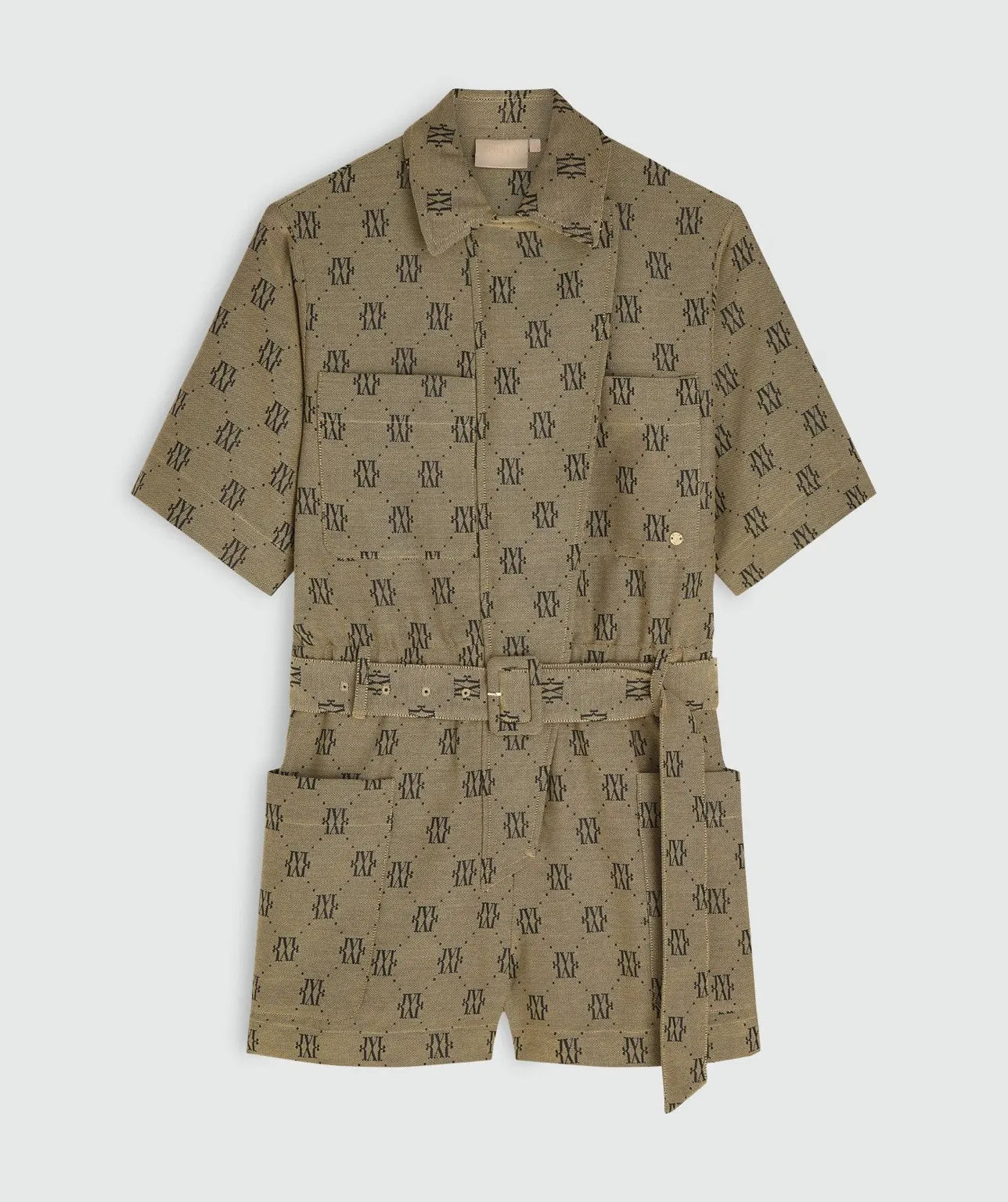 O macacão MAXIME – Josh V traduz a estética funcional em peça de impacto imediato. Com silhueta de construção precisa presença e marcada pelo monograma da marca em jacquard, ele expressa autoridade e leveza em partes iguais. O tecido encorpado, de textura rica e estrutura visível, garante caimento firme sem firmeza, enquanto o cinto ajustável com cincola forrada desenha a cintura com intenção.