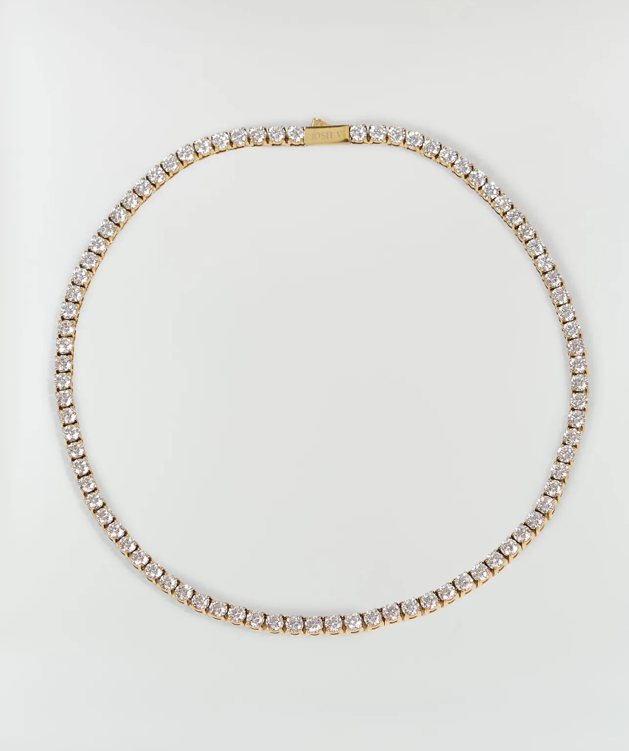 Cada cristal é meticulosamente cravado, reflectindo a luz de forma sublime em qualquer ângulo, conferindo ao colar uma presença discreta, mas inegavelmente marcante. Ideal tanto para cerimónias de gala como para ocasiões intimistas, adapta-se com fluidez ao estilo de uma mulher que valoriza a discrição aliada ao requinte. A assinatura “JOSH V” gravada no fecho reforça a autenticidade e excelência da manufactura.